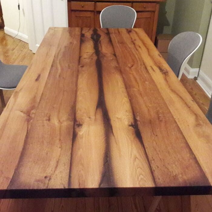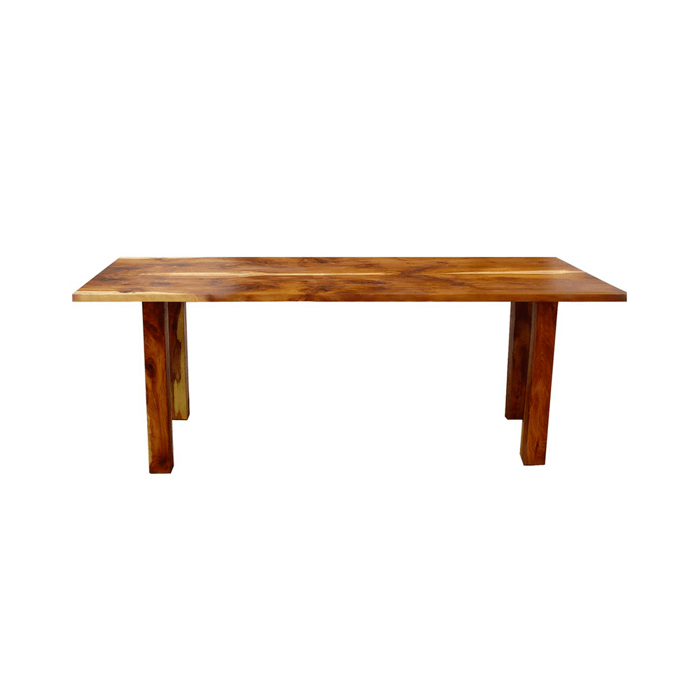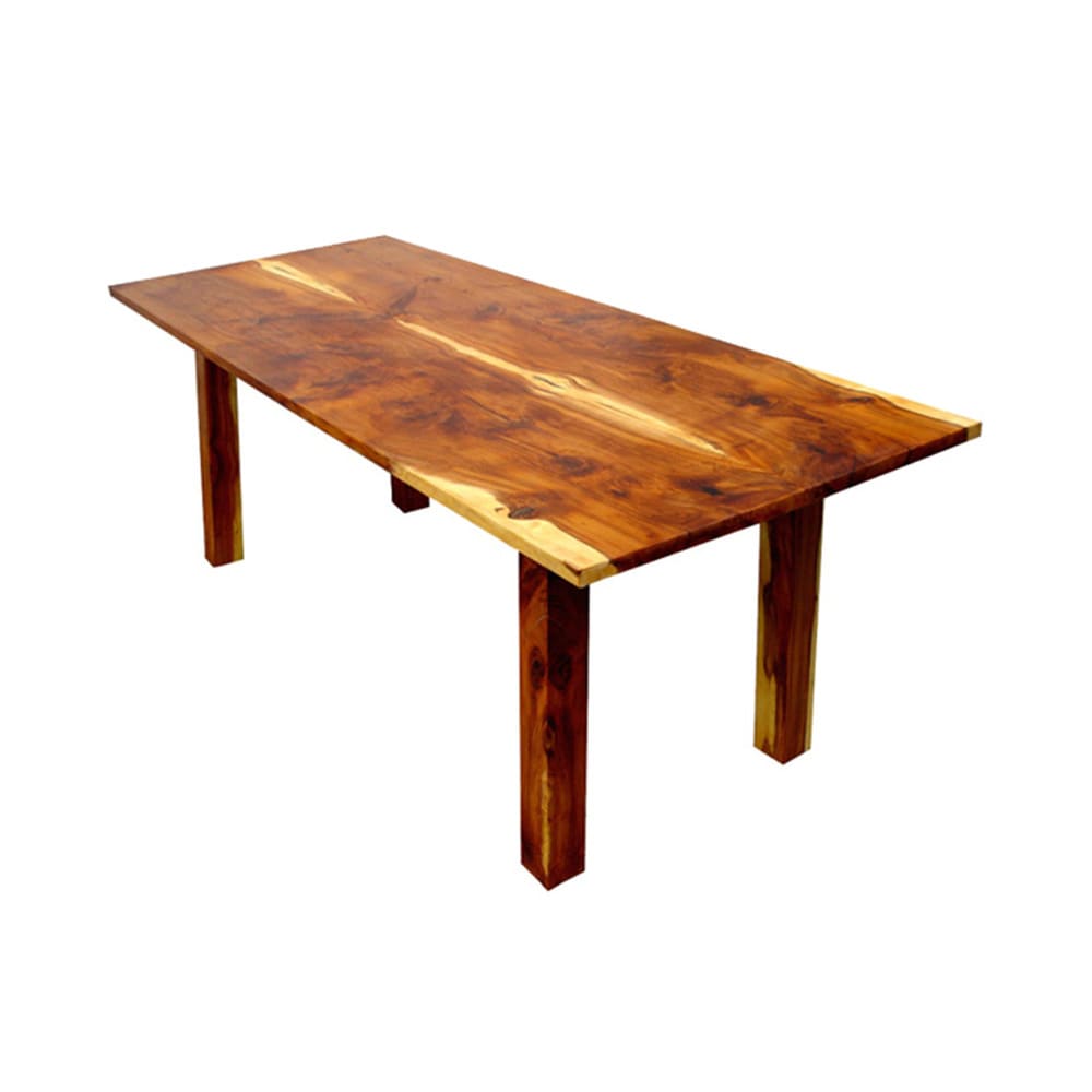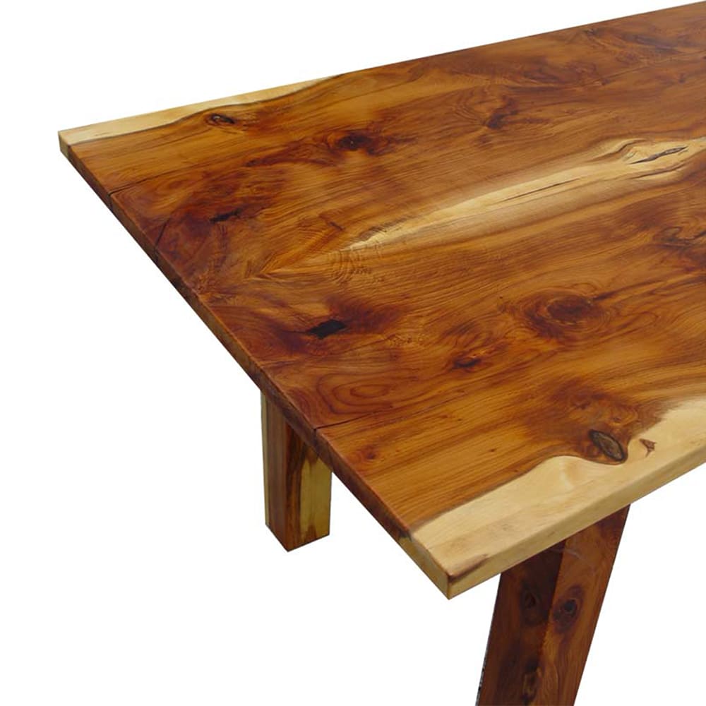 Dieser Massivholztisch besticht im Wohnzimmer durch seinen repräsentativen Charakter. Ein echter Hingucker, denn die Maserungen lassen sich ewig betrachten.